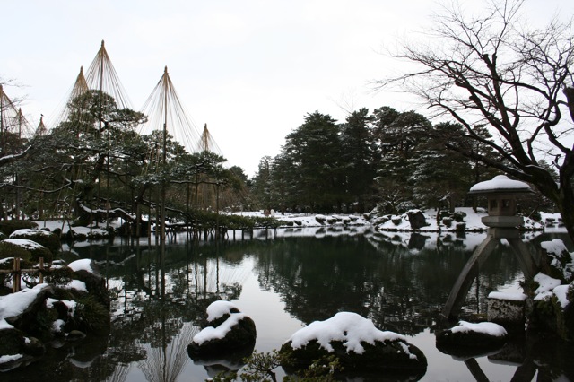 金沢城の正面にある、日本3庭園の一つ、兼六園