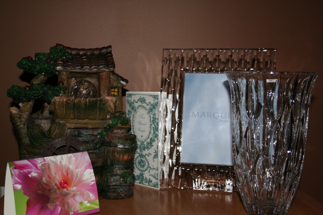 素敵な花瓶と、写真立て。左のは、電気と水を入れると、水が流れ、