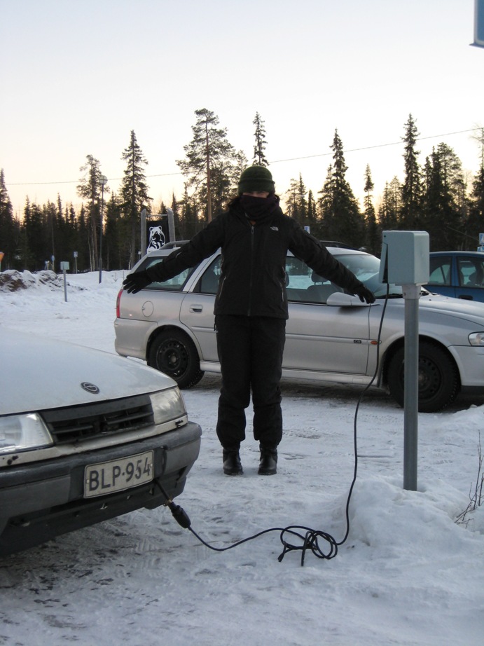 冬場はこのようにして、夜の間にプラグを差しておき、